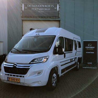 Bij De Gouden Koets bent u aan het juiste adres voor de ultieme lakbescherming: Ceramic Guard van Cartec. Deze revolutionaire coating maakt uw autolak vuil- en waterafstotend en beschermt langdurig tegen invloeden van buitenaf zoals UV-straling, pekel, insecten, vogelpoep en schadelijke chemicaliën.